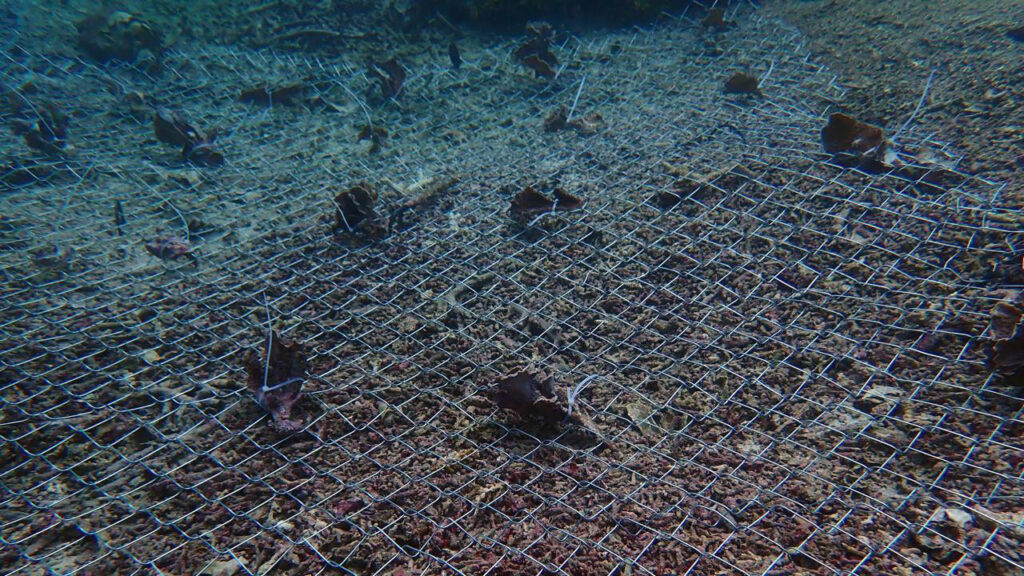This method offers several advantages, including cost-effectiveness, flexibility in deployment, and suitability for large or irregular areas that cannot be restored using traditional methods. Monitoring will continue over the coming months to evaluate coral growth, mesh durability, sediment accumulation, and broader ecological responses.